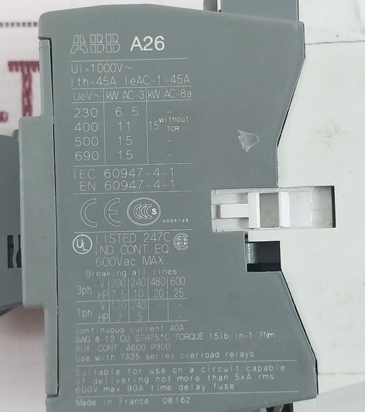 Abb A26 Ca5-01 Contactor Ta25 Du Relay With Cal5-11B Auxiliary Contact Set