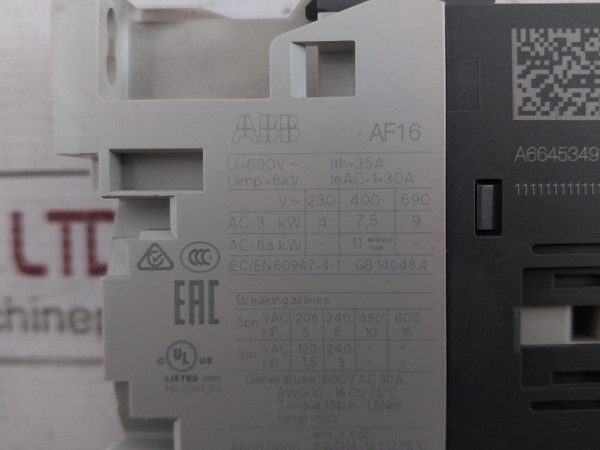 Abb Af16-30-01-13 Contactor 100-250V 50/60Hz-dc 690V 35A 6Kv 600Vac 30A