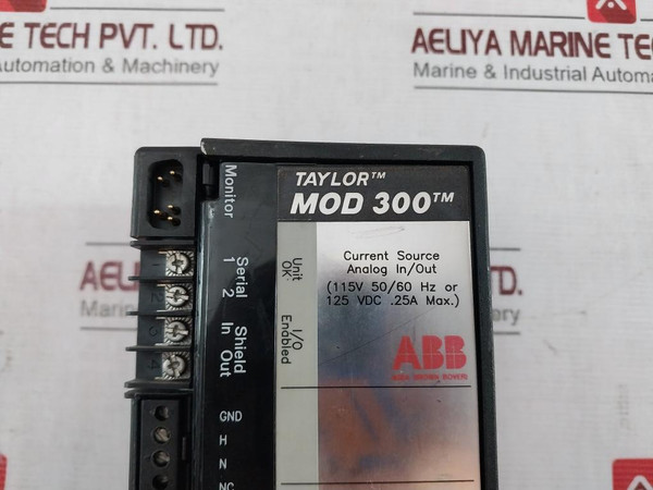 Abb Mod 300 Current Source Analog I/O Module 0.25A 50Ma Pt 6231Bp10910Abb-asea Brown BoveriAbb Process AutomationTaylorMod 300Current SourceAnalog In/Out(115V 50/60Hz Or 125Vdc .25A Max.)50Ma Pt/MaxLabel: 44B716223-021R04Term.Asm. Ac C/S Analog6231Bp10930C-k9433Electr.Module Ac C/S Analog6231Bp10920C-kTemp. Rating T4Block Cat No: 6231Bp10910Consisting Of:Electr.Asm. 6231Bp10920Term.Asm. 6231Bp10930Weight: 1.480 Kg