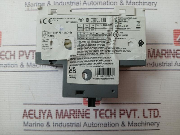 Abb Ms116 Manual Motor Starter 1Sam250000R1004 0.4-0.63A 690V 50/60Hz