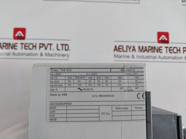 Abb Sace Tmax T6S 800 Circuit Breaker 800A 690V 50-60Hz