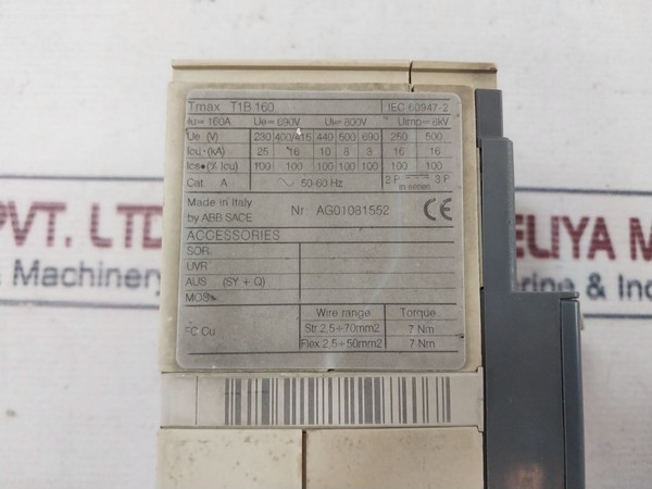 Abb Tmax T1B 160 Circuit Breaker 690V 100A