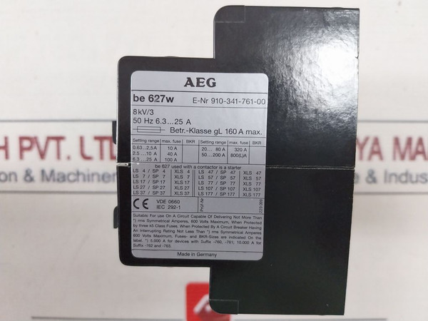Aeg 910-341-761-00 Electronic Overload Relay Be 627W, 50 Hz 6.3...25 A