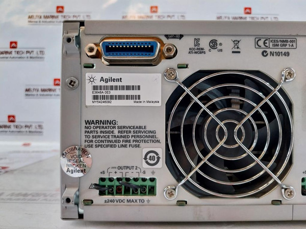 Agilent E3648A Dual Output Dc Power Supply My54246092 Rs232AgilentDual Output Dc Power SupplyE3648A0-8V, 5A/ 0-20V, 2.5AAsset Id-ame00017Rs232E3648A 0E3My54246092~Line: 47-63Hz 400VaOutput: ±240 Vdc Max Made In MalaysiaWeight: 9.540 Kg