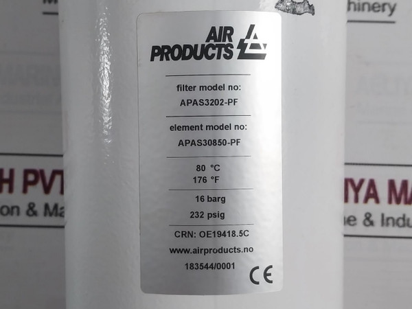 Air Products Apas3202-pf Filter Element Apas30850-pf 232Psig 16 Barg 80°C 176°F