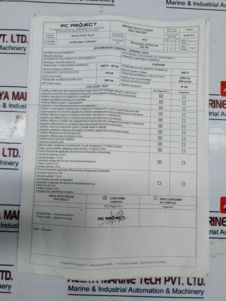 Alfa Laval Epc 60 Control Panel 51475558-80 230V 60Hz Ip54 Rev H0