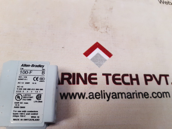 Allen-bradley 100-fa11 ser.b auxiliary contactallen-bradleya-ba11cat: 100-fser.: biec/en 60947-5-1ac-12 690v 10 aac-15600v ac max.a600 q600wxa 19auxiliary contacts front mnt.1 nc 1 nocat: 100-fa1110662072612733made in switzerlandweight: 45 gm