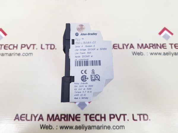 Allen-bradley 1760-l18awa-ex pico controller ser a allen-bradleypico tm pico 1760-l18awa-exseries a revision aline voltage: 120/240v ac 50/60hzline power: 10vainputs: 120/240v ac05-2325070935relay outputs:10a 240v ac b3008a 24v dc r300torque: 5-7 lb-inawg 22-12input 12 x 120/240v acoutput 6xrelay/8amade in germanyweight: 275 gm