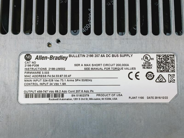 Bulletin 2198 207.6A Dc Bus Supply