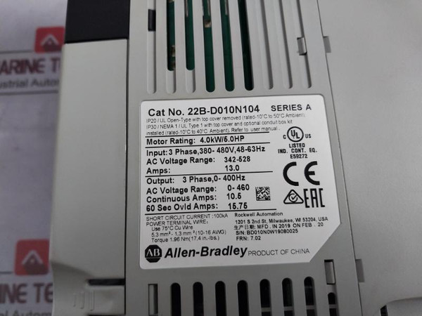 Allen-bradley 22B-d010N104 Powerflex 4 Variable Frequency Drive Efb0412Vhd