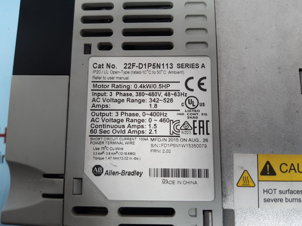 Allen-bradley 22f-d1p5n113 powerflex 4m ac drive ser.a