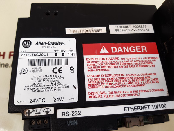 Allen-bradley 2711-t6C20L1 Rev B Touch Screen Panel 24Vdc (Not Working)