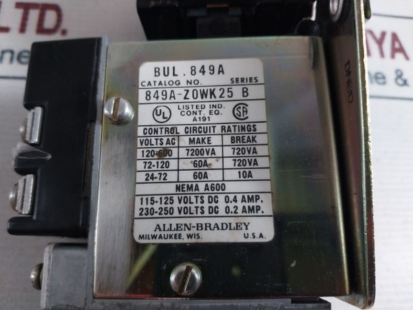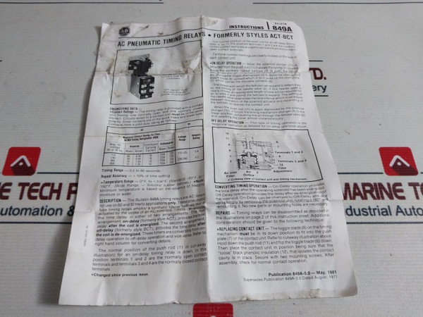 Allen-bradley 849A-zowk25 Ac Pneumatic Timing Relay 24V 50Hz
