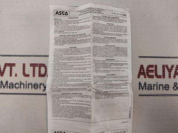 Asco E314K036S1N01F8 Direct Operated 3/2 Solenoid Valve