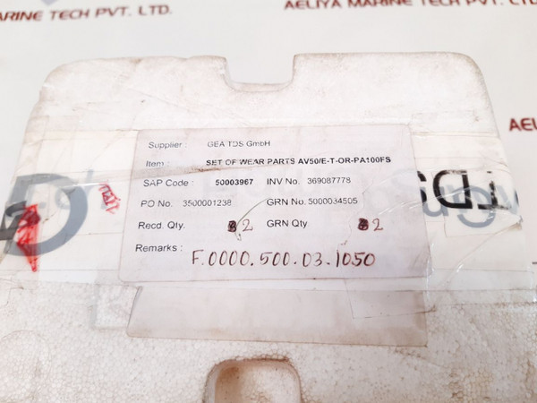 Item: Set Of Wear Parts Av50/E-t-or-pa100Fs