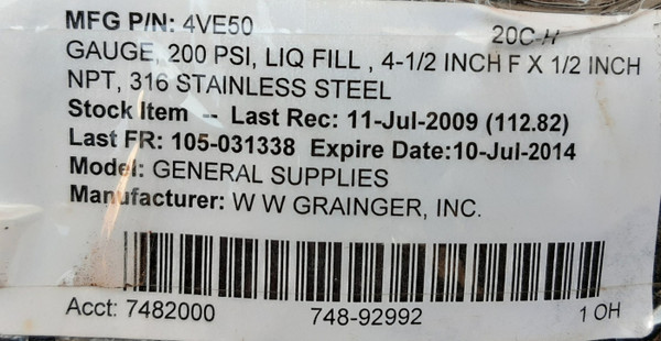 gauge 200 psi,liq fill ,4-1/2 inch f x 1/2 inch npt,316 stainless steel