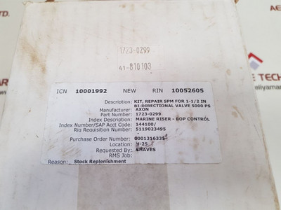 Axon Axon 1723-0299 repair kit Compare MSRP: $347.99 Axon 1723-0299 repair kit 1723-0207 rev cpiston rod1723-029941-810103icn 10001992 new rin 10052605description: kit, repair spm for 1-1/2 inbi-directional valve 5000 psmanufacturer: axonpart number:... Add to Cart Add to Cart Add to Wish List Add to My Wish List Create New Wish List