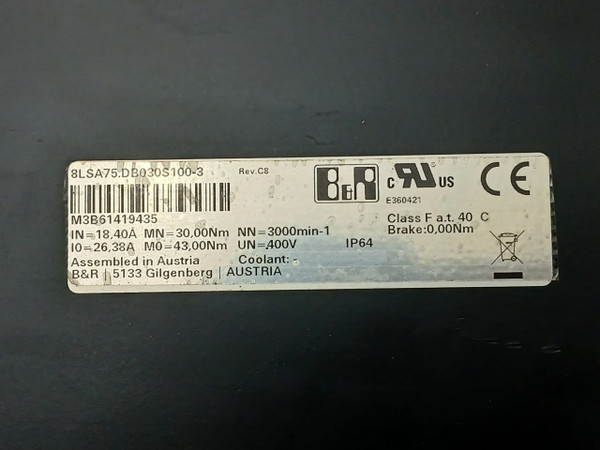 B&R 8Lsa75.Db030S100-3 Synchronous Motor Rev C8 400V E360421