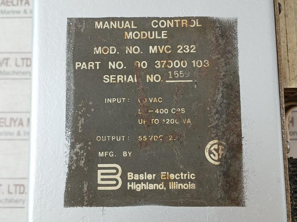 Basler Electric Mvc 232 Manual Control Module 60Vac 55Vdc 20A