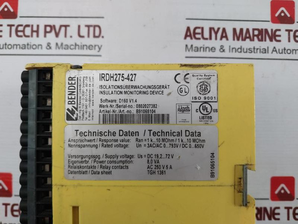 Bender Irdh275-427 Isometer Insulation Monitoring Device B91065104 (Not Working)