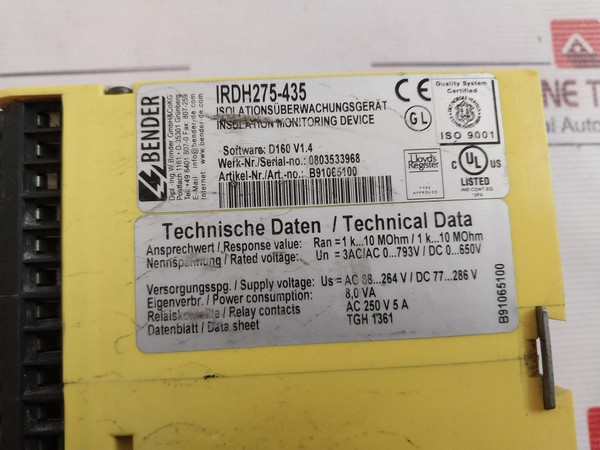 Bender Irdh275-435 A-isometer Insolation Monitoring Device