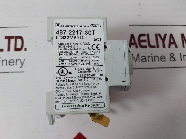 Benedikt & Jager 487 2217-30T Main Switch 600V Ac 32Amps, 50-60Hz