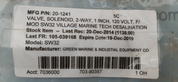 Valve,Solenoid,2-way,1 Inch,120Volt,F/Mod Sw32 Village Marine Tech Desalination