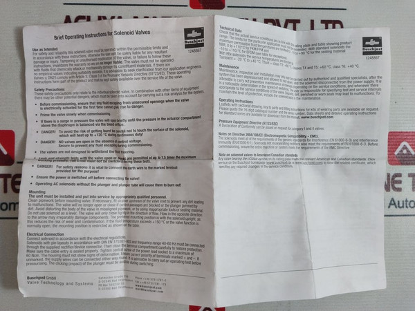 Buschjost 8240380.9100 2-way Solenoid Valve 250Vac 10A