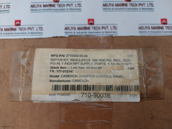 Cameron 18100-051B Repair Kit For Diverter Control Panel 2710402-03-99