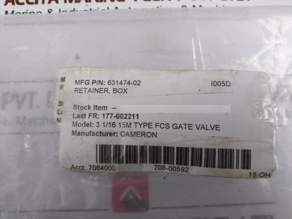Cameron 631474-02 3 1/16" 15M Fcs Gate Valve Retainer Box Fr 177-001857