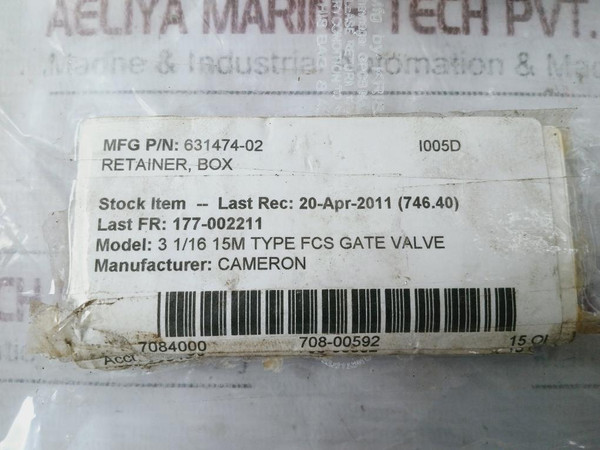 Cameron 631474-02 Fcs Gate Valve Retainer Box 3 1/16 15M
