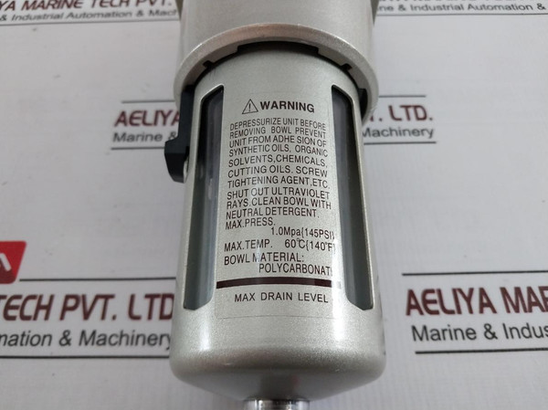 Chamc Pneumatic Af5000-10 Air Pressure Filter 145Psi 60CChamc PneumaticAir Line Filters Pt 1Af5000-10Max.Pressure.: 1.0Mpa {145Psi}Max.Temp.: 60°C{140°F}Bowl Material: Polycarbonate6936983800013Weight: 1.010 Kg