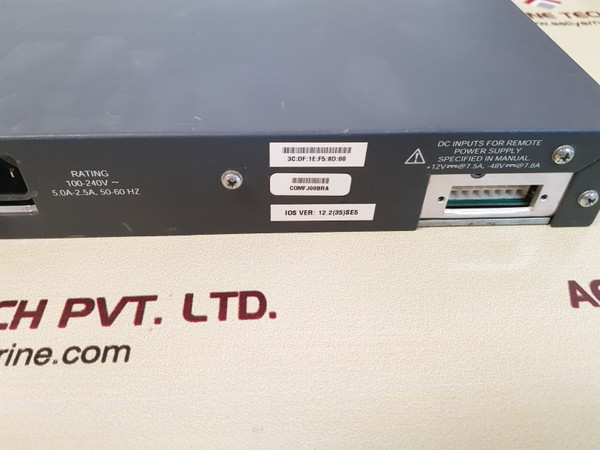 Cisco catalyst e-e011-04-0317 ethernet switch 3560cisco systems, intl., bv cisco systems, inc. catalyst 3560 series poe-24nob-nmo-sw03172.29.178.4anatel0093-05-1086(01)07898362231186switch/ws-c3560-24ps-se-e011-04-0317(a)vcci-at33272d 105974pid vid : ws -c3560-24ps - s v09rating 100-240~5.0a-2.5a, 50-60 hz 3c:df:1e: f5: 8d: 00comfj00braios ver : 12.2(35)se5dc input for remote power supply +12v---@7.5a, -48v---@7.8amade in chinaweight: 5.033 kg