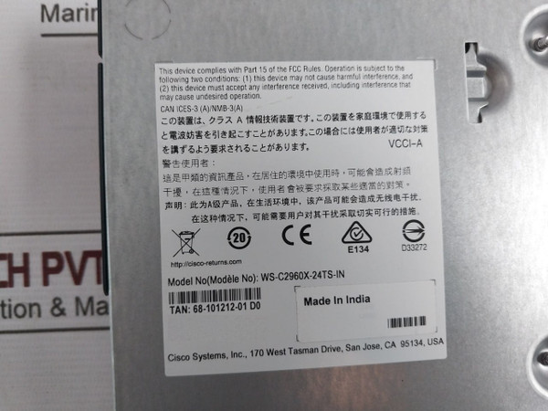 Cisco Ws-c2960X-24Ts-l 2960X Series Gigabit Managed Switch Set Ws-c2960X-24Ts-inCisco Systems, Inc.FoxconnLongwell-pHpi Catalyst 2960-x Series Model No: Ws-c2960X-24Ts-in(30P) Base P/N: Ws-c2960X-24Ts-l(3S) Pk Id: Csco+1215217757(31P) V01 Lan Base 1G UplinkVcci-a Tan: 68-101212-01 D0 Can Ices-3(A)/Nmb-3(A) Pid Vid: Ws-c2960X-24Ts-in V01Cc:8E:71:8B:39:00Rating:100-240V~1.5-0.85A50-60Hz+12V---@5AShk3Sjk20130325A053-4048-01Rev. A0* 53-2536-02Rev. J0*78-19338-01B0800-16852-02Rev. D0*51-0089-a0 48-0656-01-a0 48-0654-01-a048-0482-01-a148-0523-01-a0700-16465-01-b0700-16465-01Rev. B0*700-01663-01-a069-2281-01700-33972-0178-20273-013300418121-056448163X0.75Sqmm1100VIs: 694Cm/L-40098468 89728 00642 2Made In ChinaMade In IndiaWeight: 5.260 Kg