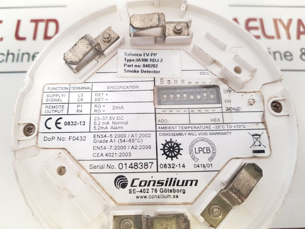 Consilium 040202 Smoke Detector Ia100 Rdj-2 23-37.5V Dc 0,2 Ma