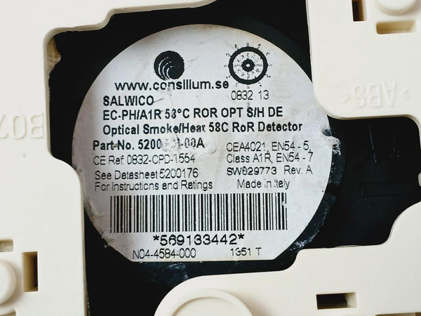 Consilium 5200176-00A Optical Smoke/Heat 58C Ror Detector Rev A