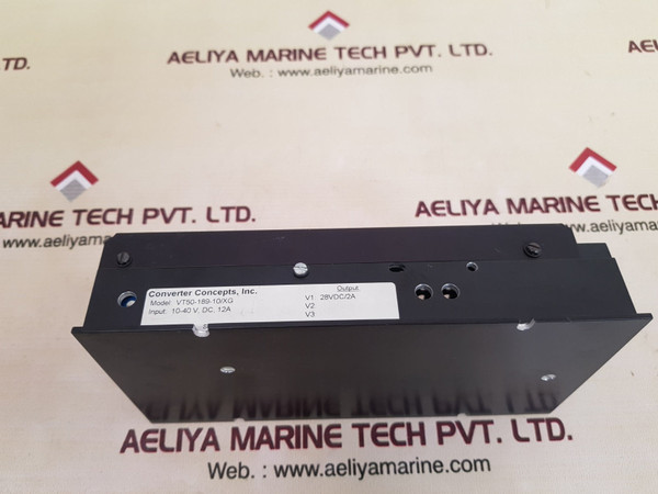 Converter vt50-189-10/xg power supplyconverter concepts, inc.model: vt50-189-10/xginput: 10-40v, dc, 12aoutput:v1: 28vdc/2achassisweight: 805 gm
