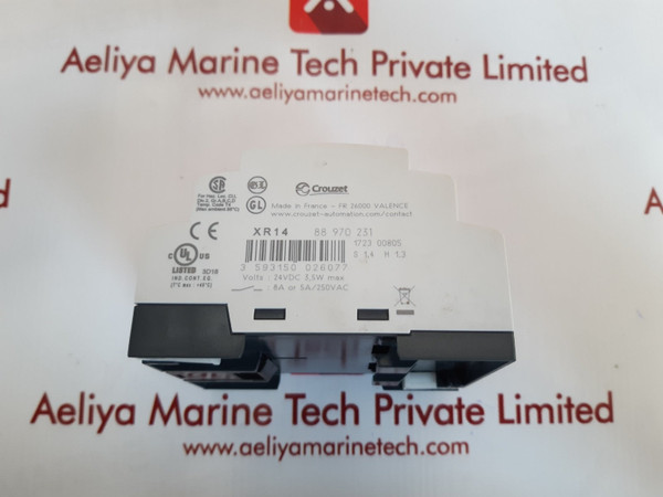 Crouzet xr14 88970231 expansion modulecrouzet xr1424vdc inputrelay output 8a/ok-ol:5a88 970 2311723 00805s 1.4h 1.33 593150 026077volts:24vdc 3,5w max:8a or 5a/250vac(t°c max:+45°c)for haz loc.cl.idiv. 2,gr.a,b,c,dtemp.code t4(max ambient 55°c)made in franceweight:190 gms