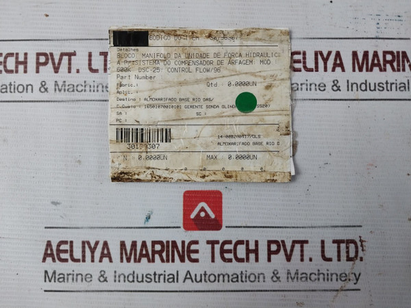 Detalhes/Details: Bloco; Manifold Da Unidade De Forca Hidraulic A; P/Sistema Do Compensador De Arfagem/ Block; Hydraulic Power Unit Manifold; For Pitch Compensator System; Mod 600K Dsc-25; 96