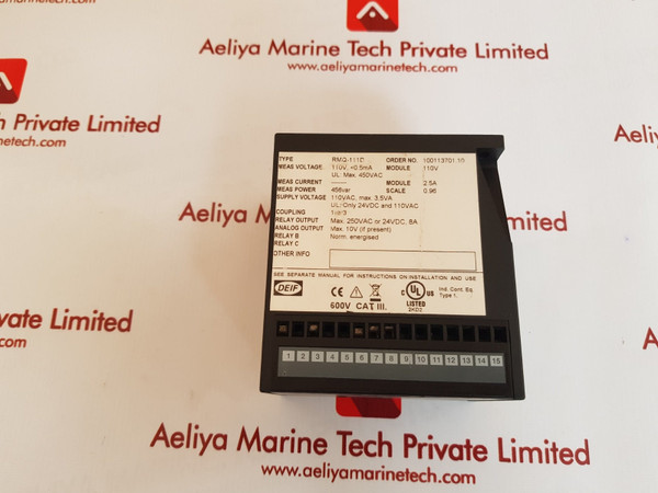 Deif Rmq-111D Circuit Relay 24Vdc 8Adeiftype rmq-111dmeas voltage 110v,0.5maul:max.450vacmodule 110vmeas current---module 2.5ameas power 456varscale 0.96supply voltage110vac,max.3,5vaul:only 24vdc and 110vaccoupling 1var3relay output max.250vac or24vdc,8aanalog output max.10v(ifpresent)ind cont eqtype 1600v cat iii.100113701.10716676.0001weight:530 gm