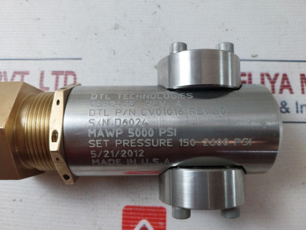 Dtl Technologies Cv01016 Rev.0 Pressure Relief Valve 5000 Psi