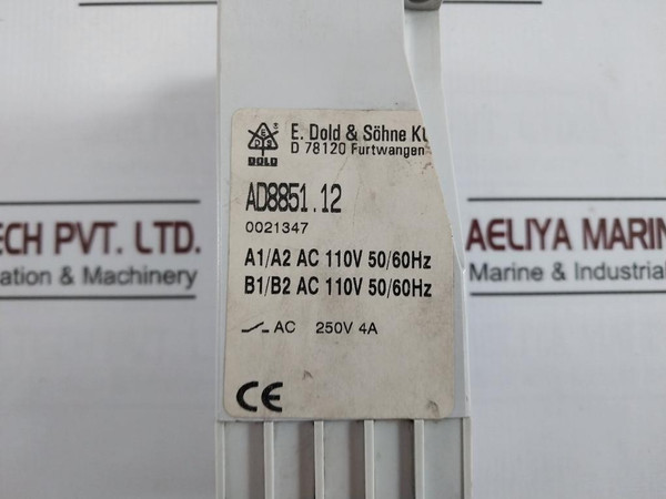 E.Dold & Sohne Ad8851.12 Latching Relay A1/A2 Ac 110V 50/60Hz Ac 250V 4AE.Dold & Sohne KgAd8851.120021347A1/A2 Ac 110V 50/60HzB1/B2 Ac 110V 50/60HzAc 250V 4AWeight: 350 Gm