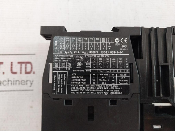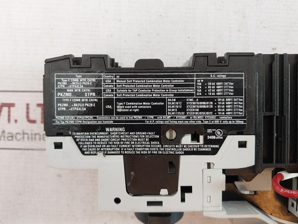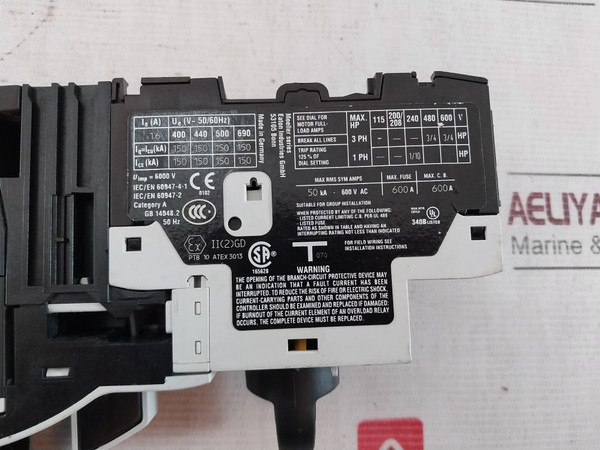 Eaton Pkzm0-1.6 Xtpr1P6Bc1 Overload Relay Motor Protector Circuit BreakerEaton Industries GmbhMoeller SeriesPkzm0-1.6Xtpr1P6Bc1In=1,6A0412Uimp= 6000VIec/En 60947-4-1Iec/En 60947-2Category AGb 14048.2 50HzIi (2) GdPtb 10 Atex 3013110V 50Hz/120V 60HzDil M7-10Xtce007B10M007BAc-1Ie=Ith: 20AUimp: 8000VGb 14048.4Aux.Cont A600 P3003 Pole Break 250V DcMax 20 A Open3Ph 600V Ac Max 20A OpenCu 75°C Wire Tightening Torque 1.2 Nm/10.6 Lb.In. Awg 18 Awg 10 For Single Awg 18 Awg 14 For Double For Aux.Cont.Tightening Torque 1.2 Nm/10.6 Lb.In. Awg 18 Awg 14 For Single Awg 18 Awg 14 For DoubleDil M32-xhi11Xtcexfdc112911Ith: 16AIec/En 60947-5-1600V Ac Max.10A250V Dc Max.10ACu 75°C Wire Awg 18..14Tightening Torque: 1.2Nm/10.6 Lb.InNhi21-pkz0/Xtpaxsa21Ith=69A/40°C5A-600V Ac 1A-250V DcA600 Q300Tightening Torque: 1Nm/9 Lb.InD090004W12Made In RomaniaMade In GermanyWeight: 700 Gm