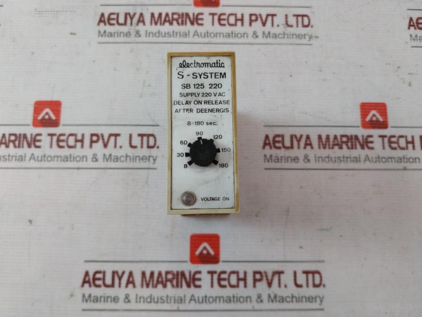 Electromatic Sb 125 220 Time Delay Relay S-system 10A/380V- S411ElectromaticS-systemSb 125Sb 125 220Supply 220 V AcDelay On ReleaseAfter Deenergis8-180 Sec.S41110A/380V~Weight: 240 Gm