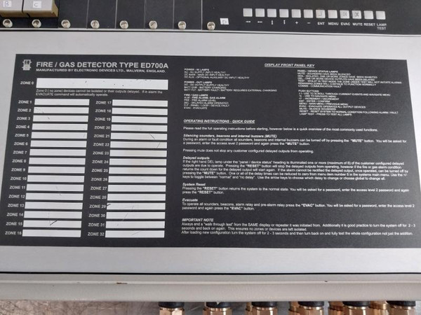 Electronic Devices Ed700A Fire/Gas Detection Panel Rev 4 Ed723