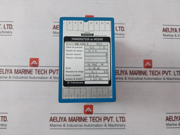 Enertec Schlumberger Iar 1210 B Measuring Transducer 0-1A 4-20 Ma 24V Cc 60HzEnertec SchlumbergerTransducteur De Mesure/ Measuring TransducerIar 1210 В  8541Classe De Precision/Accuracy Class: 0,5Etendue De Mesure/Measurement Range: 0-1A60HzSortie/Output: 4-20 MaRésistance De Charge/Load Resistance: 0-1 ΚΩSource Auxiliaire/Auxiliary Source: 24 V Cc2 318 483Fabriqué En France/Made In FranceWeight: 420 Gm