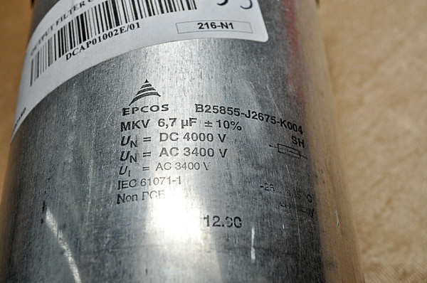 Epcos B25855-j2675-k004 Mkv Output Filter Capacitor,4000V Dc,3400V Ac