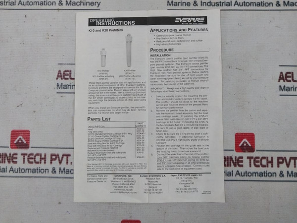 Everpure 9795-21 K10 Prefilter Assembly