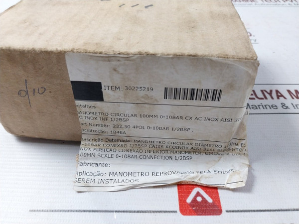 Famabras 14105-1 Pressure Gauge 0-10 Bar 232.50 4 Pol 1/2 Bsp