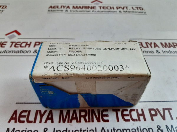 Stock Item/Part Name: Relay, Miniature Gen. Purpose, 24Vdc 7A 250V